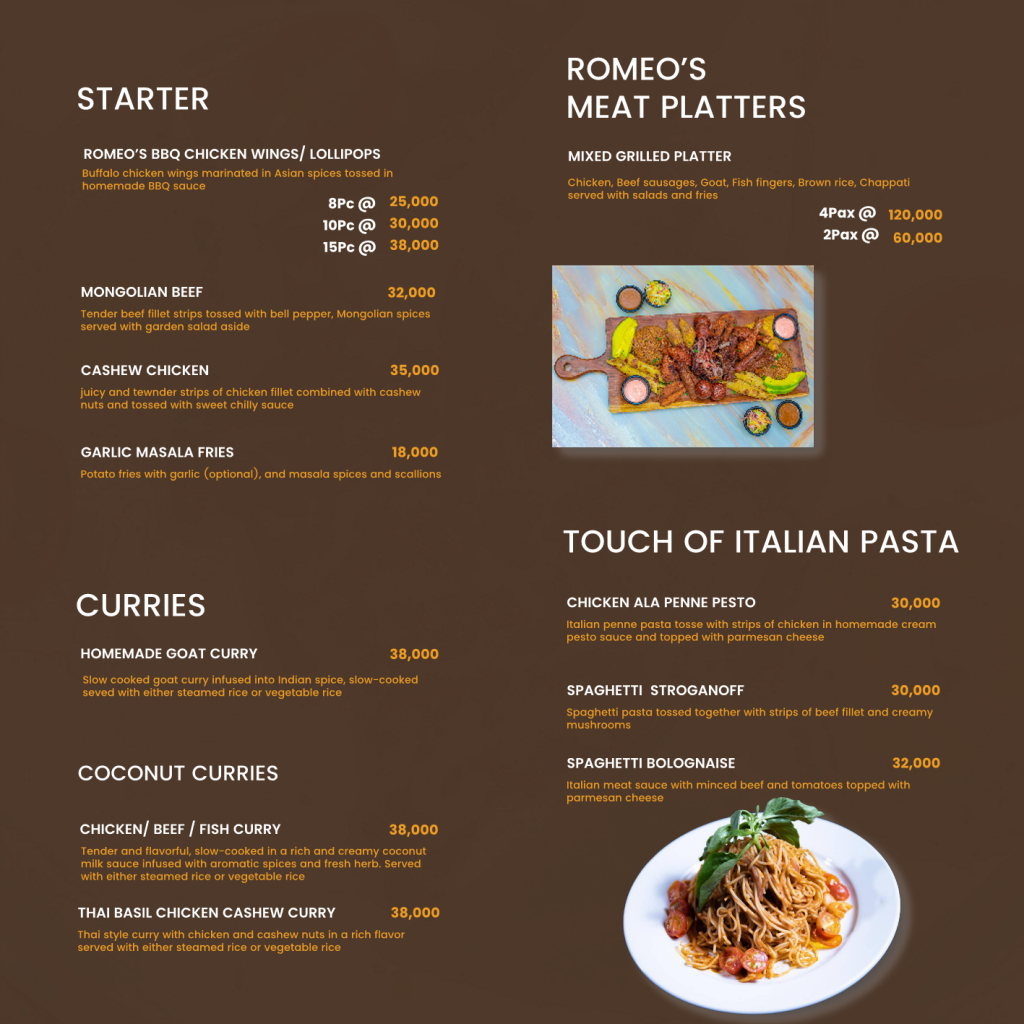 ROMEO'S RESTAURANT MENU