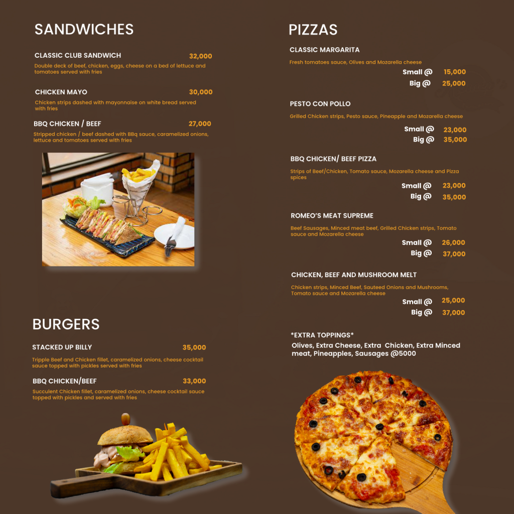 ROMEO'S RESTAURANT MENU