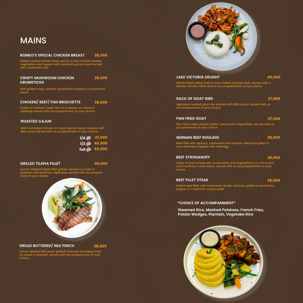 Romeo's Restaurant Ntinda - Rd opposite Total fuel station.